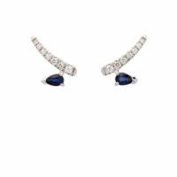 Pendientes trepadores de oro blanco brillantes y zafiros